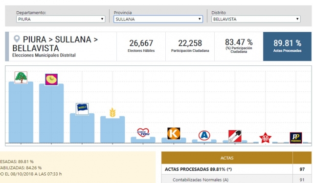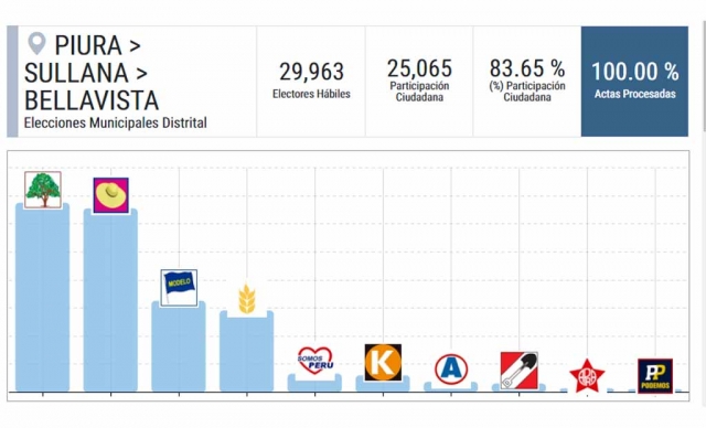 ERP. La provincia de Sullana reconfiguró la política local en las elecciones municipales realizadas el último domingo 7 de Octubre. Primero, se confirmó la elección de Power Saldaña Sánchez como flamante alcalde provincial; sin embargo, el caso de Bellavista llegará incluso hasta la impugnación de actas con observaciones que impiden definir si Hildebrando Crisanto Vilela gana o en su defecto Julio Oliva de Región para Todos.