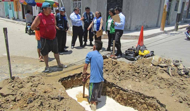 ERP. Personal del área de fiscalización de la comuna distrital de Bellavista intervinieron los trabajos realizados por la Empresa Prestadora de Servicios (EPS) Grau, quienes hicieron un forado en la carpeta asfáltica entre la intersección del transversal Morropon y calle Puno, frente a la plaza Simón Morales de Bellavista.