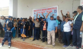 ERP. Un paro pacífico realizaron ayer 39 obreros de la municipalidad distrital de Bellavista debido al retraso en el pago de sus sueldos correspondientes al pasado mes de diciembre, así como el incumplimiento en los acuerdos del pacto colectivo.
