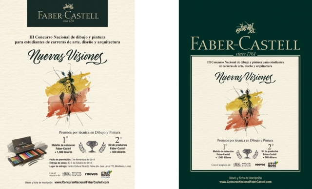 ERP. Faber-Castell Peruana, afianzando su compromiso con el arte, la cultura y la creatividad, presenta la III edición del Concurso Nacional de dibujo y pintura "Nuevas Visiones Faber-Castell 2018", dirigido a estudiantes de arte, diseño y arquitectura de las escuelas, institutos y universidades de todo el Perú.