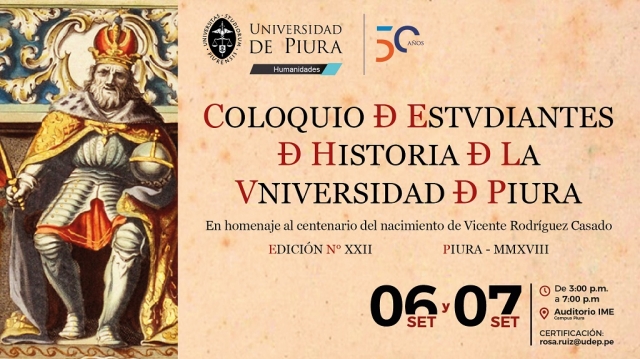 Esta edición XXII del Coloquio, que organiza la Facultad de Humanidades, reunirá a estudiantes, docentes, profesionales e interesados en la Historia, en el auditorio IME de la UDEP. Además de intercambiar conocimientos con las investigaciones realizadas rendirán un homenaje a Vicente Rodríguez Casado, con ocasión del Centenario de su nacimiento. Este profesor español, fallecido en 1990, fue impulsor de los estudios especializados de Historia en esta casa de estudios.