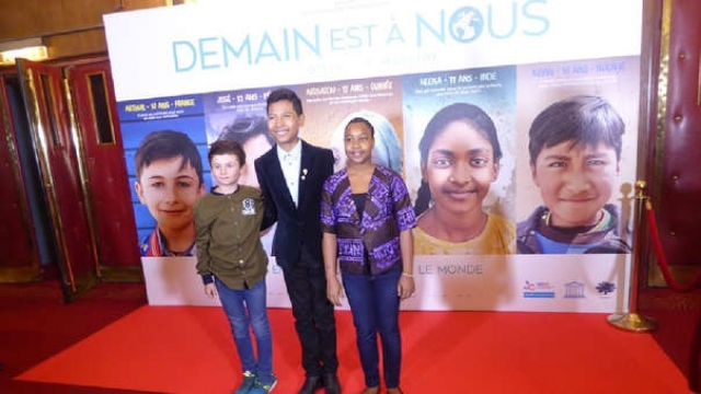 El niño es el el principal protagonista de "El futuro es nuestro", un documental estrenado hoy en París.. por la compañia Walt Disney.