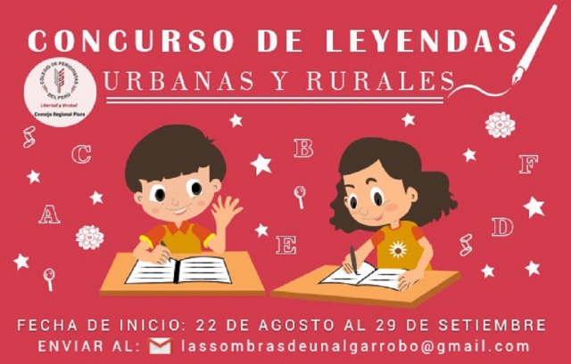 ERP. Con la finalidad de promover la creatividad literaria se ha convocado al concurso denominado “Las sombras de un algarrobo” dirigido a los estudiantes de 4to y 5to del nivel secundario pertenecientes a colegios estatales y privados a participar en la escritura de leyendas urbanas y rurales de la región Piura.