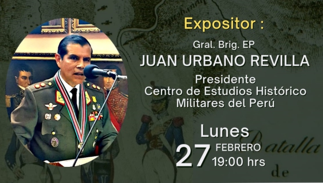 La indicada conferencia se encontrará, a cargo del Sr. Gral. Brig. Juan Urbano Revilla, Presidente del CEHMP, quien tratará sobre este período histórico del tiempo peruano de la independencia, y los hechos de armas ocurridos de octubre de 1822 a febrero de 1823, que culminaron en el pronunciamiento militar de Balconcillo y la designación del primer Presidente de la República.