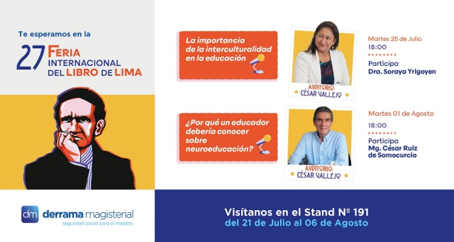 ERP. En el marco de la 27ª Feria Internacional del Libro de Lima – FIL Lima 2023, el evento cultural, académico y editorial más relevante del Perú, la Derrama Magisterial se hará presente a través de una serie de promociones, novedades, lanzamientos y actividades como conversatorios, acorde con el programa cultural de la FIL.