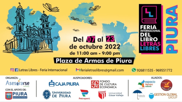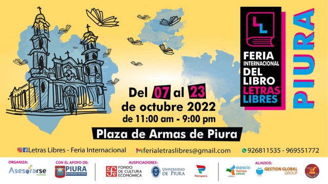 ERP. La primera edición de la FERIA INTERNACIONAL DEL LIBRO LETRAS LIBRES PIURA 2022, que se realizará del 7 al 23 de octubre en la Plaza de Armas de Piura, contará con la participación especial de destacadas personalidades del ámbito literario latinoamericano. Con lo que se anuncia un programa cultural innovador que incluye actividades presenciales y virtuales por redes sociales.