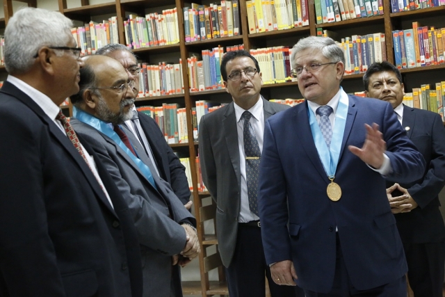 ERP. La Universidad Nacional de Piura (UNP) recibió la visita del Econ. Renzo Rossini Miñan MSc., Gerente General del Banco Central de Reserva del Perú y gestor de la recuperación de la Biblioteca Especializada de la Facultad de Economía de la UNP, la misma que el pasado 27 de marzo se inundó a consecuencia de la salida del río Piura, perdiéndose miles de libros, publicaciones, y proyectos de tesis en el desastre.