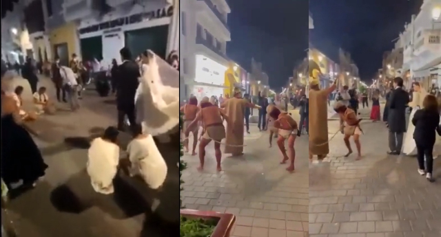 De acuerdo al diario El País, tras la aparición de vídeos se pudo observar primero “(…) la pareja de esposos y los invitados caminaban por una vía peatonal del centro de Trujillo como parte de un pasacalle con música y fuegos artificiales: mientras la novia se desplazaba con la ayuda de niños que sostenían la cola del vestido, jóvenes de largas trenzas y con prendas simples ―como si fueran cocineras indígenas del tiempo del virreinato― aparentaban manipular utensilios de barro y canastas. “