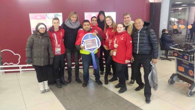 La Federación Peruana de Fútbol (FPF) compartió una fotografía de Gareca, junto a la delegación peruana que lo acompaña, en el aeropuerto de Moscú.