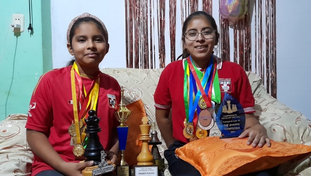 Luhana y Cielito dictan talleres de ajedrez en beneficio de otros estudiantes de la I. E. 15030 Divino Corazón de Jesús, quienes al igual que ellas comparten esa misma pasión por el ajedrez.