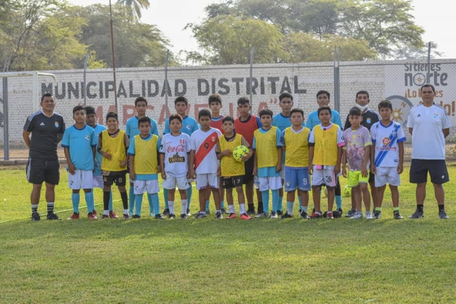 ERP. Merced al convenio interinstitucional suscrito con la Municipalidad Distrital de Marcavelica, la escuela de fútbol sostenible de Sporting Cristal, sede Sullana, ya funciona en este distrito, cumpliendo con desarrollar sesiones de entrenamiento en el estadio Las Palmeras de la jurisdicción.