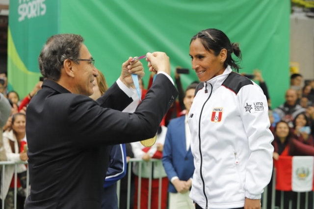 ERP. El inicio fue alentador para Perú que vive con emoción primeros resultados que favorecen a deportistas nacionales. El presidente de la República, Martín Vizcarra, entregó hoy la medalla de oro a los atletas nacionales Gladys Tejeda y Christian Pacheco, campeones panamericanos en la maratón de mujeres y varones respectivamente, en los Juegos Panamericanos Lima 2019.