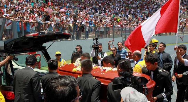 ERP. "Ole, ole, ole...Daniel": Hoy te volviste eterno Daniel. En un hecho sin precedentes, gran cantidad de hinchas llegaron hasta el Estadio Nacional para rendir homenaje y dar el último adiós a la voz símbolo de los partidos de la Selección Nacional de Fútbol, el periodista deportivo y narrador Daniel Peredo Menchola, quien el último lunes dejó de existir víctima de un paro cardíaco.