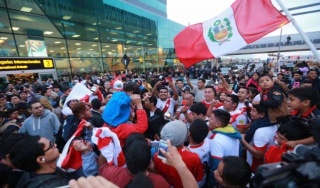 ERP. Cientos de hinchas de la selección peruana llegaron al aeropuerto Jorge Chávez para brindar su respaldo a Paolo Guerrero, suspendido 30 días tras un resultado analítico adverso en un control "antidoping".