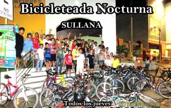 ERP. Con la finalidad de impulsar en la comunidad sullanera un estilo de vida saludable y a la vez; promover el uso de la bicicleta como un importante medio de transporte que beneficia: primero el medio ambiente ya que no contamina; y segundo que contribuye a mejorar la salud de las personas, este jueves 3 de marzo, desde de las ocho de la noche, partiendo de la plaza de la cultura “José Carlos Carrasco Távara”, organizada “Ciclismo Urbano de Sullana", un colectivo cívico sin fines de lucro.