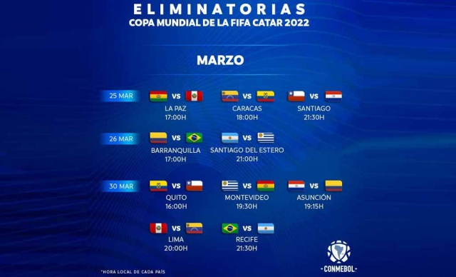 ERP. La Confederación Sudamericana de Fútbol (Conmebol) suspendió este sábado la doble fecha de la clasificatoria sudamericana al Mundial de Catar-2022 ante la imposibilidad de contar con todos los jugadores sudamericanos que militan en Europa, debido a la pandemia del coronavirus, anunció la entidad.