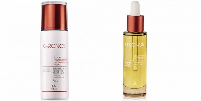 ERP. Estudios recientes señalan que la exposición al sol, la contaminación y el estrés son las principales causas del envejecimiento prematuro de la piel. Por ello, Natura Cosméticos trae al Perú la solución para este problema con su nueva ‘Plataforma Revitalizante Chronos’. Este lanzamiento tiene como protagonistas al Concentrado Revitalizante y al Fluido Multiprotector con FPS 50, productos que revierten los daños causados por los factores externos y que protegen la piel.