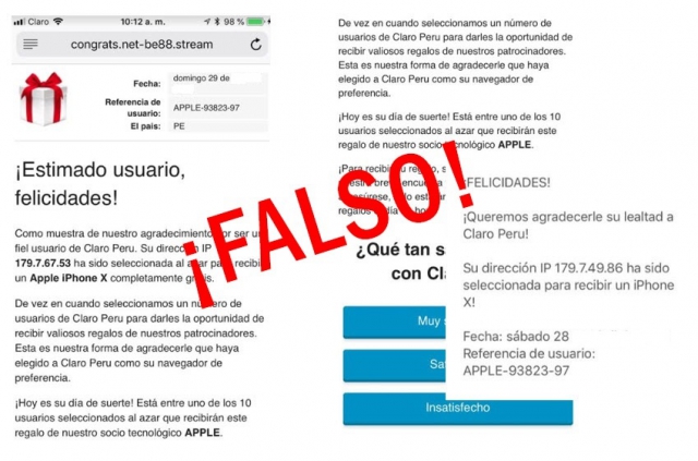 ERP. La empresa de telecomunicaciones, Claro, informó sobre la existencia y difusión de páginas web fraudulentas que, haciendo uso ilegal del nombre de la compañía, anuncian recompensas falsas a cambio de completar encuestas. Esta recurrente modalidad de estafa en línea es conocida como phishing.