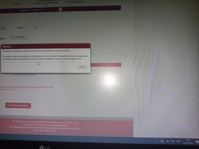 ERP. El sistema de mesa de partes virtual que se utiliza para la presentación de escritos en el Poder Judicial falla repetidamente. Son varios abogados que litigan en las Cortes Superiores de Justicia de Piura y Sullana, que lo vienen haciendo notar para que se hagan las correcciones del caso y no se les afecte en los diversos trámites que deben realizar.