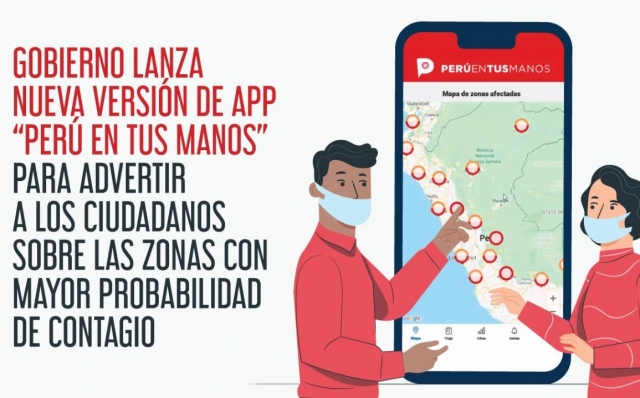 ERP. Como parte de la estrategia digital para enfrentar el COVID-19 diseñada en el grupo “Te Cuido Perú”, el Gobierno anunció hoy el lanzamiento de la nueva versión de la aplicación “Perú en tus manos”, que busca advertir a los ciudadanos sobre las zonas con mayor probabilidad de contagio. Esta aplicación constituirá un elemento clave para el retorno progresivo de los ciudadanos a la actividad económica cuando culmine la cuarentena.