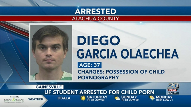 ERP. La Policía de Gainesville, La Florida, Estados Unidos arrestó a un estudiante de doctorado internacional de la Universidad de Florida por varios cargos relacionados con la posesión de pornografía infantil. Diego García Olaechea, quien sería natural de Piura, Perú deberá responder a la justicia norteamericana por los cargos que se le imputan, los cuales son graves debido a las evidencias encontradas en el registro realizado.