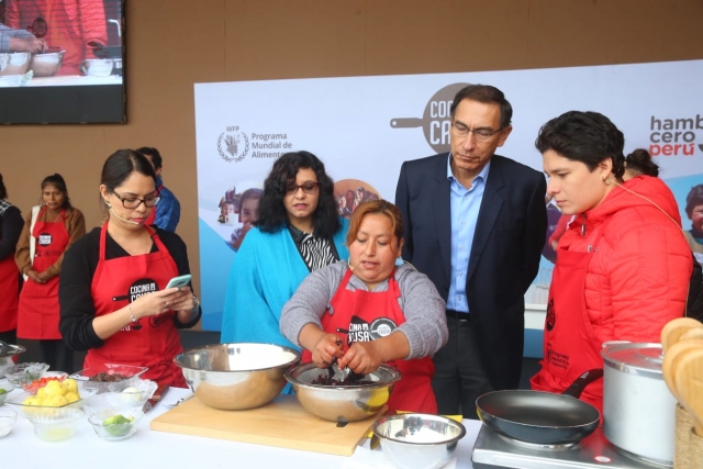 El mandatario, acompañado por la primera dama y educadora Maribel Diaz Cabello, acudió este mediodía a la localidad de Pachacútec en Ventanilla, para realizar el lanzamiento de la segunda temporada del programa 'Cocina con Causa' que se emite por Tv Perú, a nivel nacional.