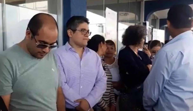 El fiscal llegó acompañado de su seguridad estatal, permaneciendo en silencio mientras esperaba su turno en la cola.