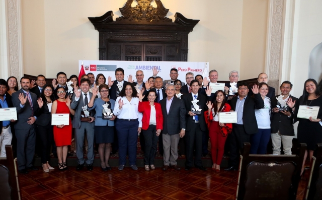 Foncodes se adjudicó el primer premio en la categoría “Perú Natural” - mención “Mitigación al cambio climático”. El director ejecutivo de Foncodes, Hernán Eduardo Pena, acompañado por la viceministra de Prestaciones Sociales del MIDIS, Ender Narda Allain Santistevan, recibió hoy el premio en Palacio de Gobierno de manos del presidente del Consejo de Ministros, César Villanueva y de la ministra del MINAM, Fabiola Muñoz.