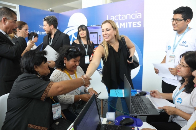 La doctora Molinelli recorrió los tres stands de EsSalud instalados en la Feria Expo Proveedores 2019, en loa cuales se brindaron información sobre las facilidades de pago de deuda no tributaria, así como el pago de lactancia con cero trámites, Padomi Delivery, entre otros.