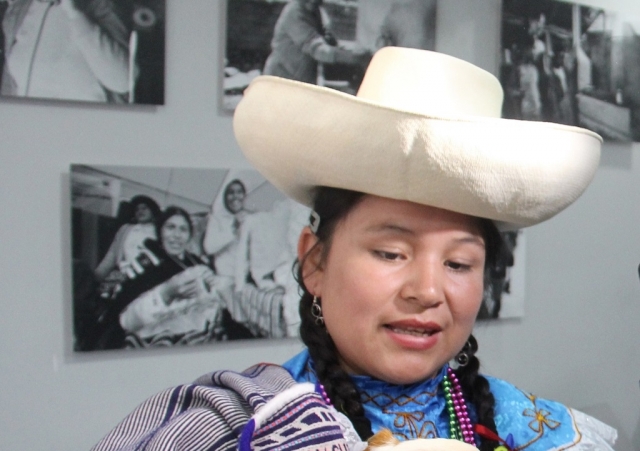Marisol Cachique Amasifuen (27) de la comunidad nativa Chirikyacu – Chunchiwi, provincia de Lamas, San Martín. Es yachachiq bilingüe: habla el quechua y español, tiene una hija de 4 años. Es técnica forestal. “Trabajo con 50 familias ‘de campesino a campesino’ en las comunidades de El Dorado y Huaja-Ishichiwi, donde se está innovando la alimentación tradicional de yuca, plátano”.