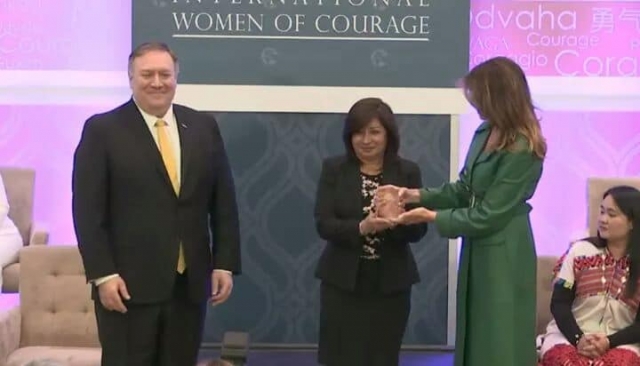 Vega partió un día antes hacia Washington DC, para recibir el reconocimiento. La actividad fue presidida por la Primera Dama Melania Trump junto al Secretario de Estado Mike Pompeo quienes entregaron el "Premio Internacional Mujeres de Coraje". Además de la sullanera, Vega Zapata del Perú, se premiaron a nueve mujeres de todas partes del mundo.