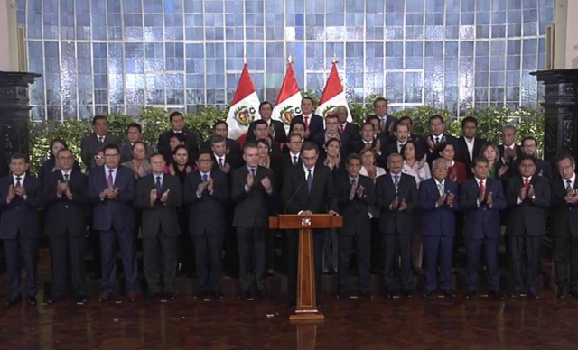 ERP. El presidente de la República, Martín Vizcarra, anunció que el gobierno ha decidido presentar al Congreso cuestión de confianza respecto a las políticas de Estado de fortalecimiento institucional y lucha contra la corrupción; en caso de ser denegada tiene la posibilidad de disolverlo.