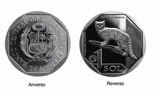 ERP. El Banco Central de Reserva (BCR) pone en circulación, desde el 3 de julio del 2019, la novena moneda de la serie numismática Fauna Silvestre Amenazada del Perú, alusiva al gato andino.