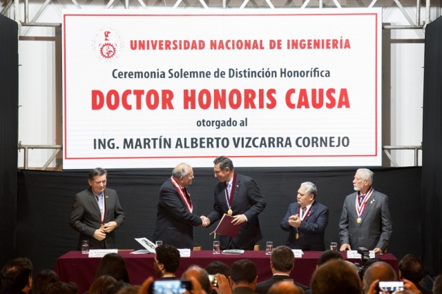 ERP. Egresó de las aulas de esta casa de estudios y en el marco del 143° aniversario de la Universidad Nacional de Ingeniería, la UNI le otorgó la distinción de Doctor Honoris Causa al presidente Ing. Martín Vizcarra Cornejo en una ceremonia celebrada el 23 de julio en el auditorio del Centro Peruano Japonés de Investigaciones Sísmicas y Mitigación de Desastres (CISMID-UNI).