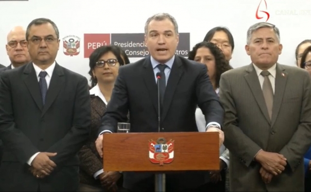 Acompañado de los demás integrantes del gabinete, Salvador del Solar se pronunció respecto a la crisis política, que va llegando a su clímax y cuyas consecuencias son imprevisibles, no solo por el archivo del proyecto; sino de igual manera con la intención de elegir a los miembros del Tribunal Constitucional en un momento muy difrícil y que no existen puntos de consenso para salir del embrollo.