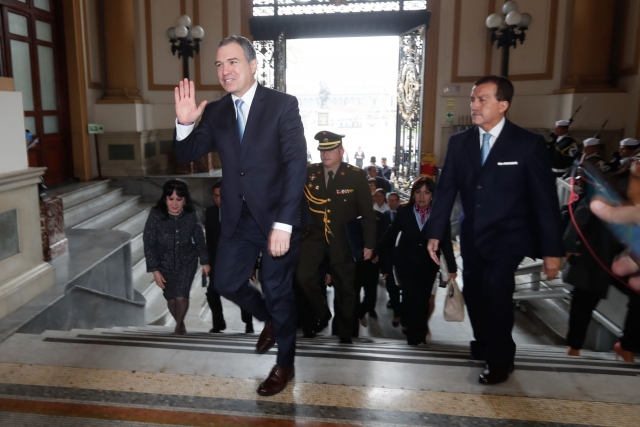 El presidente de la República, Martín Vizcarra, acompañó a su equipo ministerial hasta la puerta de Palacio de Gobierno por el jirón Desamparados, desde donde los ministros de Estado avanzaron en Legislativo en sus respectivos vehículos.
