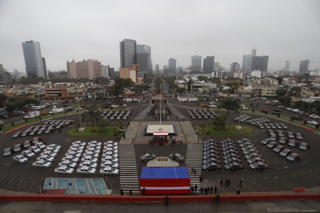 Posteriormente participó en la entrega de vehículos, donde aprovechó para indicar que este Gobierno expresa el total respaldo a la Policía Nacional del Perú en su lucha diaria contra la inseguridad ciudadana y una muestra de ello es que se le implementa con un moderno equipamiento y, a fin de este año, contará con 900 nuevos patrulleros, afirmó hoy el jefe de Estado, Martín Vizcarra.