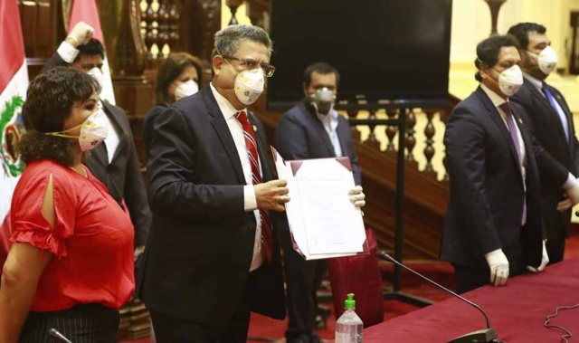 ERP. El presidente del Congreso, Manuel Merino de Lama, promulgó junto a la Mesa Directiva, la autógrafa de ley que permite el retiro del 25 por ciento de los fondos de las Administradoras de Fondos de Pensiones (AFP), con la finalidad -se señala- de otorgar insumos económicos para la población y reactivar la economía.