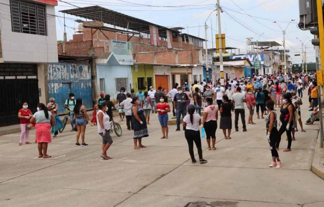 -En los bancos y entidades financieras el aforo es no mayor del 50% y para el ingreso se exige la desinfección previa y el uso obligatorio de guantes y mascarillas, así como mantener una distancia social no menor de dos metros.