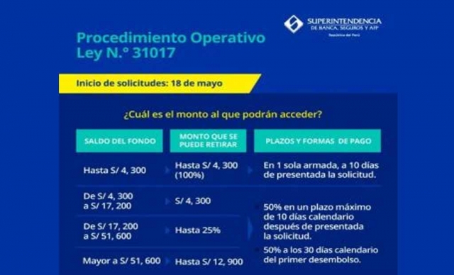 En cumplimiento de dicha Ley, mediante Resolución N° 1352-2020 publicada hoy en el Diario Oficial, la SBS ha aprobado el procedimiento operativo para que las administradoras de fondos de pensiones (AFP) atiendan a los afiliados que soliciten el retiro de sus fondos.