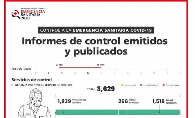 ERP. Desde el 24 de febrero la Contraloría General emitió y publicó 3,629 informes como parte de la “Estrategia de Control a la Emergencia Sanitaria COVID-19” en las modalidades de control concurrente, orientación de oficio, visita de control, y otros, para garantizar el buen y correcto uso de los fondos públicos para la atención de la contención de la expansión de COVID-19 en el país.