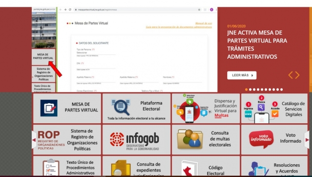 ERP. Desde este lunes, los ciudadanos pueden realizar diversos trámites administrativos de manera remota ante el Jurado Nacional de Elecciones (JNE) a través de la Mesa de Partes Virtual (MPV) que se puso en funcionamiento para facilitar la atención durante el actual período de aislamiento social por causa del COVID-19.
