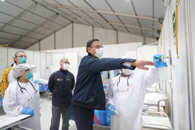 ERP. El presidente de la República, Martín Vizcarra, continuó con sus labores en la capital realizando la supervisión en la implementación del nuevo Centro de Atención y Aislamiento Covid-19, instalado por el legado de los Juegos Lima 2019, en el Hospital Hipólito Unanue, ubicado en el distrito de El Agustino.