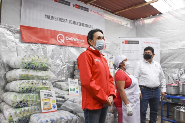 Durante una visita de trabajo a la olla común Sagrado Corazón de Jesús, ubicada en el asentamiento humano del mismo nombre, en el distrito de Mi Perú, en la región Callao, la titular del Midis detalló que dicha entrega de alimentos se da en el marco del Decreto Legislativo N.° 1472, que faculta al mencionado programa social a brindar apoyo alimentario de manera excepcional a poblaciones vulnerables, en el contexto de la crisis sanitaria y a pedido de municipios distritales, ministerios o el Instituto Nacional de Defensa Civil (Indeci).