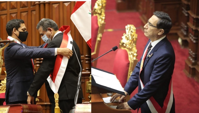 Manuel Merino de Lama, quien se convirtió en el primer presidente de la República con solo quinto de secundaria, juramentó este 10 de noviembre y de inmediato se apersonó a Palacio de Gobierno para asumir el mando; en tanto, protestas por todo el país hicieron sentir su inconformidad y los vítores de golpe de Estado se repitieron por todo el territorio nacional.