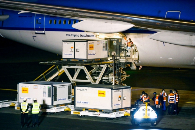 La jefa del Gabinete Ministerial, Violeta Bermúdez, supervisó el arribo de la nave de KLM junto a la canciller Elizabeth Astete, y el ministro de Salud, Óscar Ugarte.