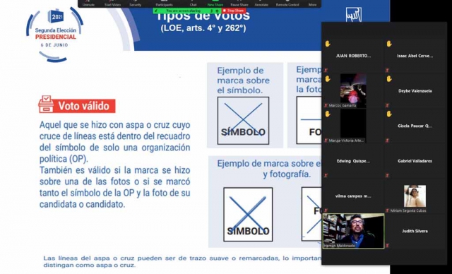 Todas las capacitaciones fueron virtuales y se usaron las plataformas de la ONPE y de los partidos políticos Fuerza Popular y Perú Libre, lo que permitió la participación de personeros de los diversos departamentos, así como a los personeros residentes en el extranjero.