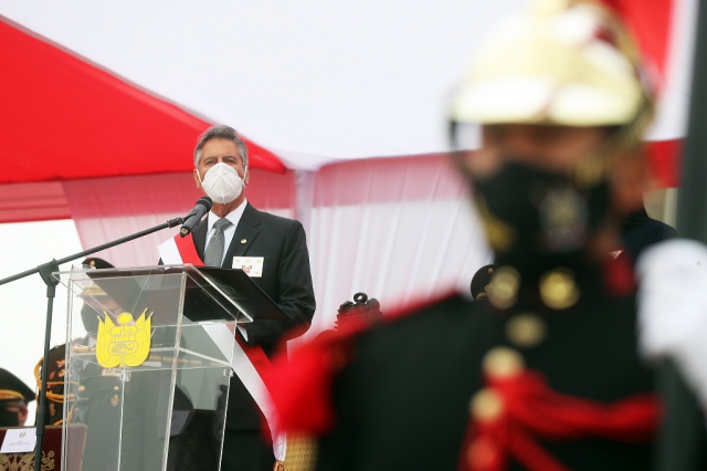 El presidente Sagasti afirmó que “hoy tenemos una nueva oportunidad para renovar nuestro juramento a la bandera que nos identifica como nación” y que “nuestras decisiones y acciones, como el ejemplo de Bolognesi y de nuestras Fuerzas Armadas y Policía Nacional, nos permitan ostentar el derecho de llamarnos dignamente hijas e hijos del Perú, todos y todas bajo una misma bandera”.