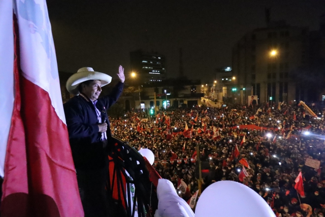 ERP. El candidato presidencial Pedro Castillo Terrones, volvió al discurso público, para dirigirse a una multitud que lo esperada en su local de Lima, para darle su respaldo respecto a los resultados oficiales, que posiblemente le otorguen el triunfo. Felicitó a los personeros que defendieron el voto el último domingo y dijo que será el primero en hacer respetar la voluntad del pueblo peruano.