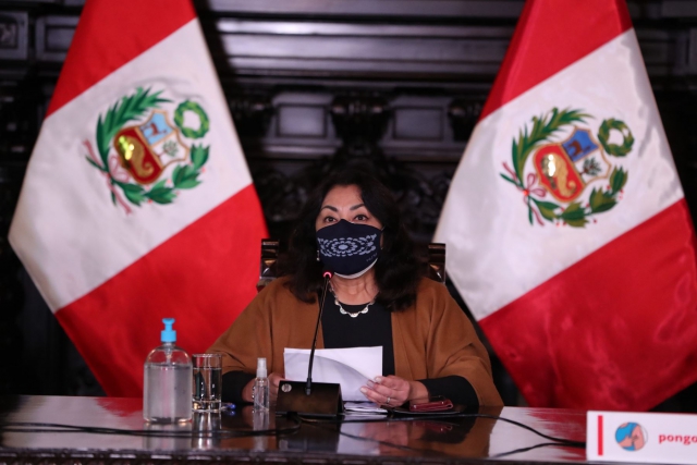 ERP. La jefa del Gabinete Ministerial, Violeta Bermúdez, además de informar sobre la pandemia que afecta a peruanos y peruanas hizo un llamado a la ciudadanía a respetar la voluntad popular y realizó un reconocimiento a la labor de los organismos electorales que organizaron los últimos comicios en todo el territorio nacional.